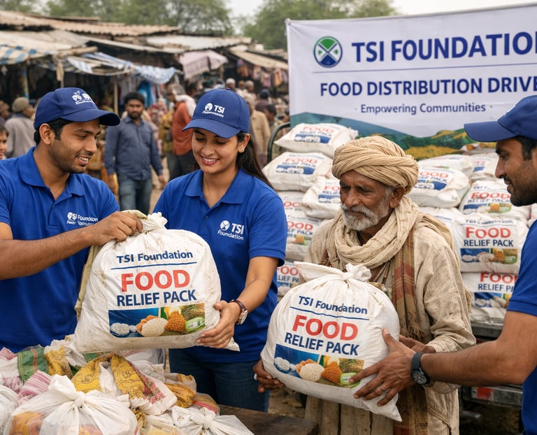 TSI Foundation, in collaboration with ITI Laxmi Enterprises and the dedicated TSI team, organized a Food Distribution Project to support economically weaker and needy communities. The initiative aims to provide essential food assistance to people facing financial difficulties and ensure that basic food support reaches vulnerable families.